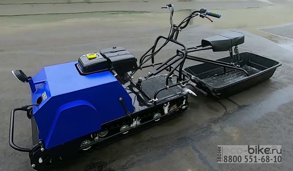 - мотобуксировщик разбирается на части - двигатель, рама с гусеницей, капот, лыжный модуль;